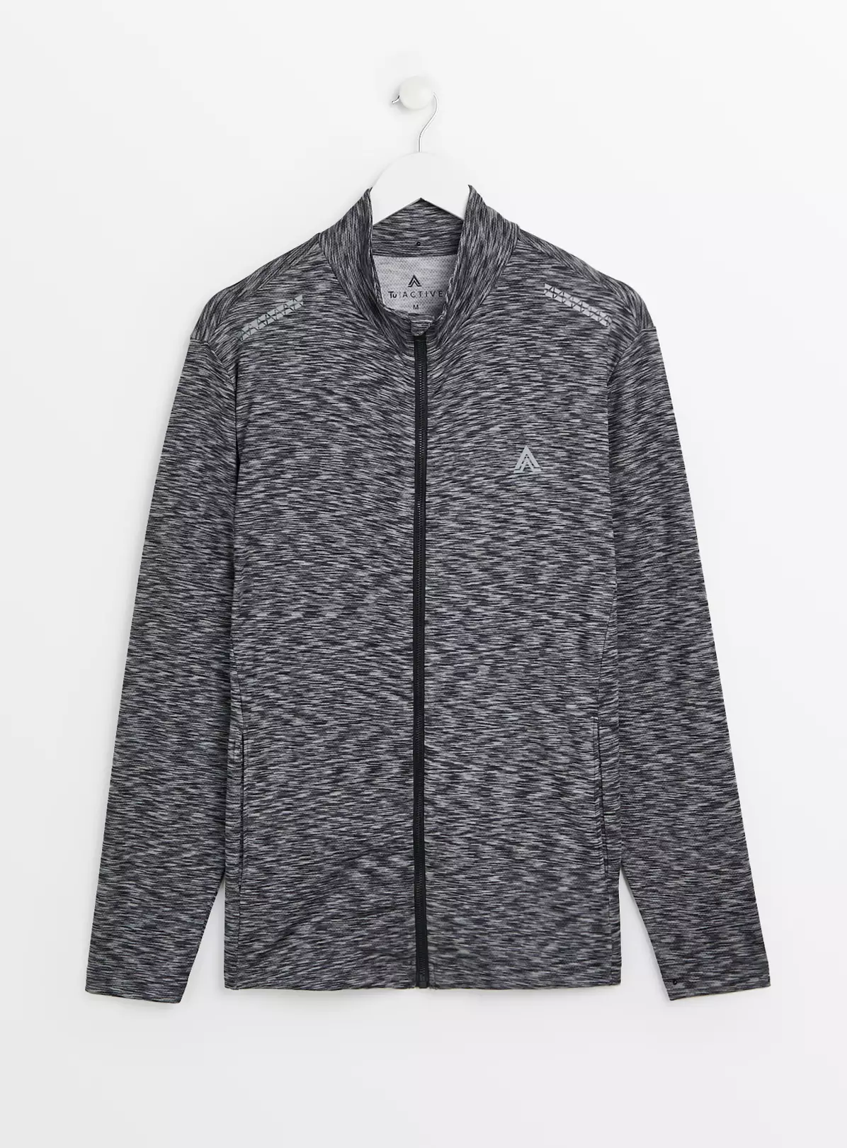 Update your gymwear wardrobe with our zip-through top. In a cool grey space dye design, it’s a stylish and comfortable pick for your workout sessions and active days spent out and about. With added stretch, it’s a must-have for your collection.