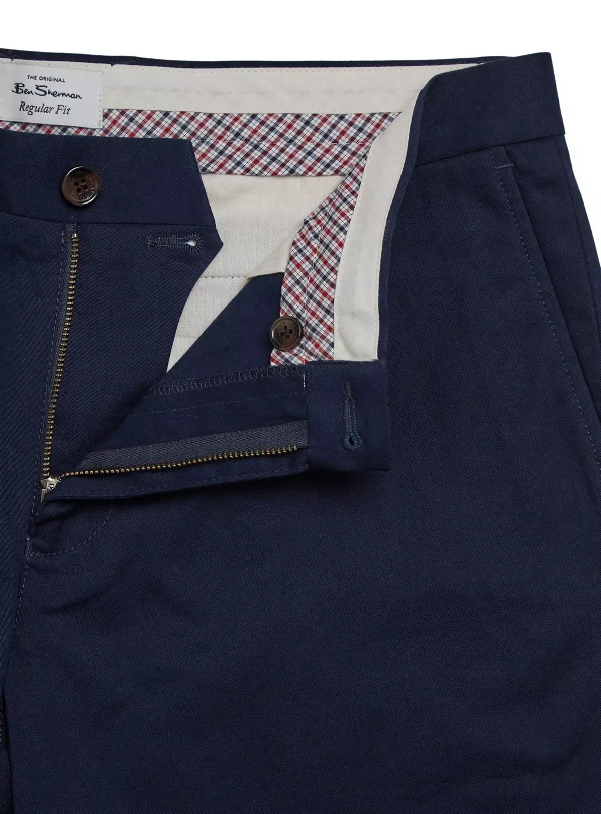 Our classic chino short in a cotton fabric. Features include Ben Sherman values, mod stripe hem detailing and a branded Ben Sherman badge. This piece has 2 side pockets and 2 jet pockets.