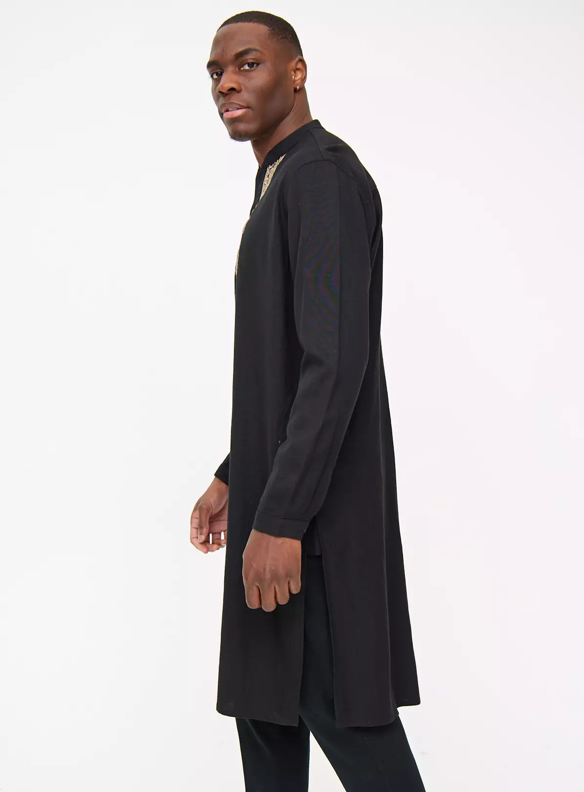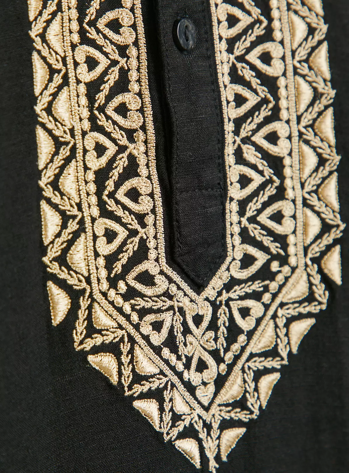 Ideal for both casual and formal occasions, our black kurta is adorned with tonal embroidery around the neck and collar. Crafted with linen, it’s a comfortable option for Eid and other events.