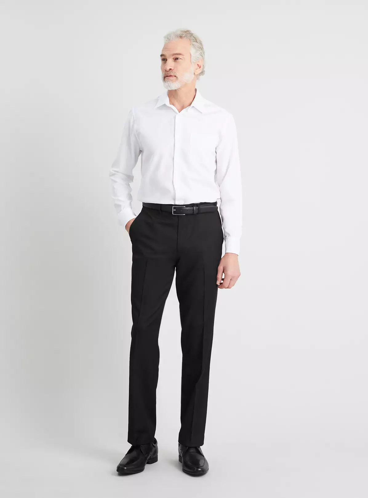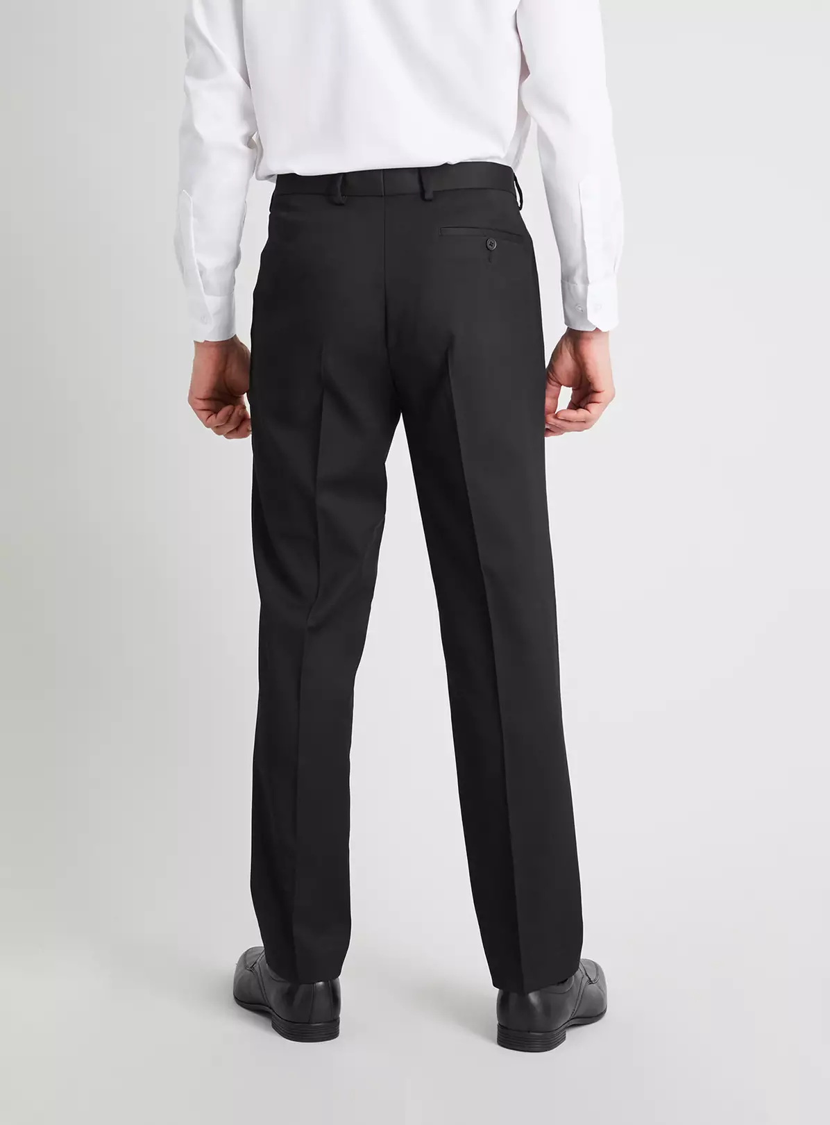Cut to a tailored fit, these classic black trousers which will keep you looking sharp at work or formal occasions. With permanent creases, which will remain as crisp as the day they were first pressed, dress up with a formal jacket or ease back with a shirt and jumper.