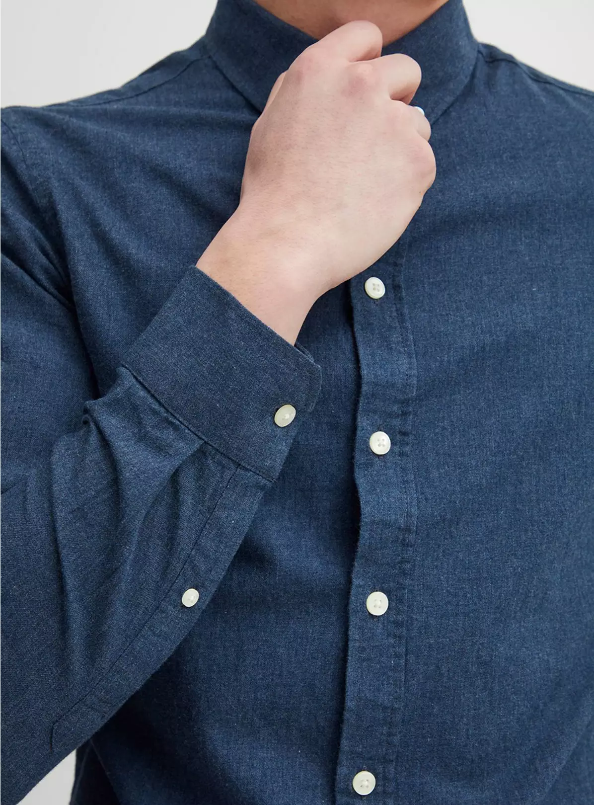 100% cotton long sleeve shirt. Traditional value fastenings on placket and cuffs. Button-down collar for a smart-casual look.