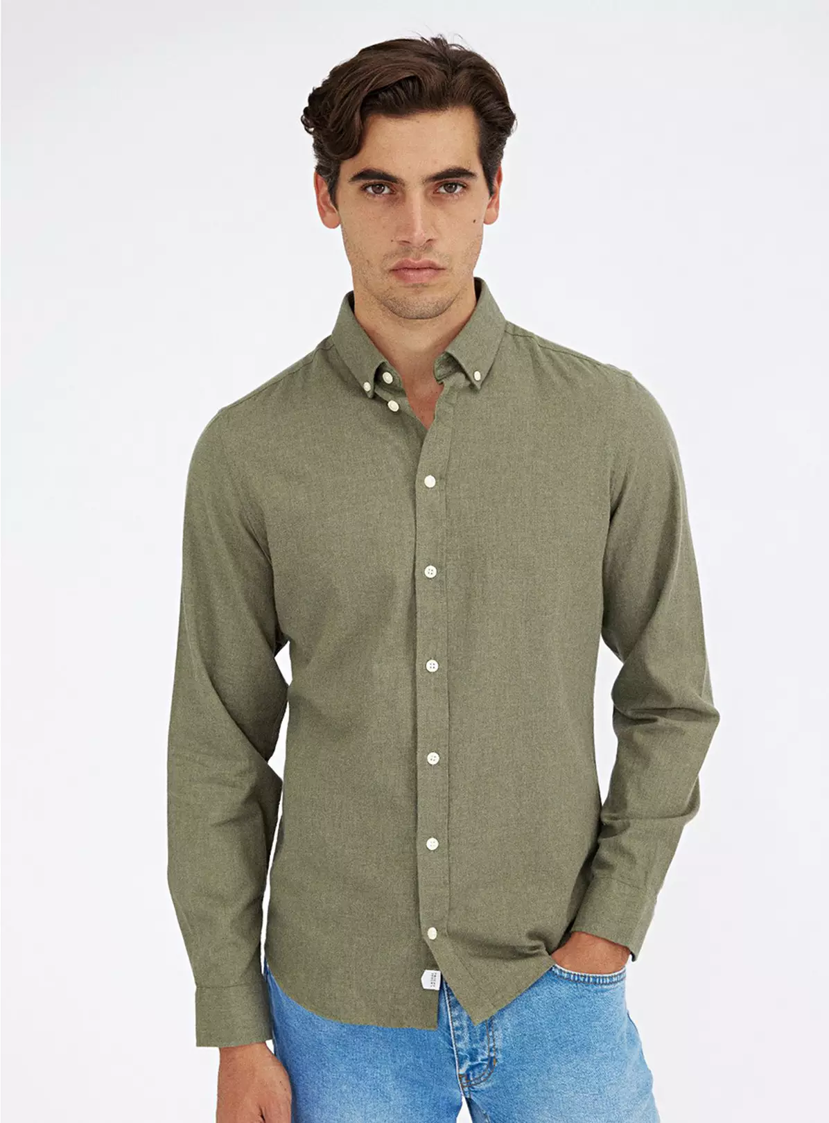 CASUAL FRIDAY Olive Cotton Long Sleeve Shirt XL