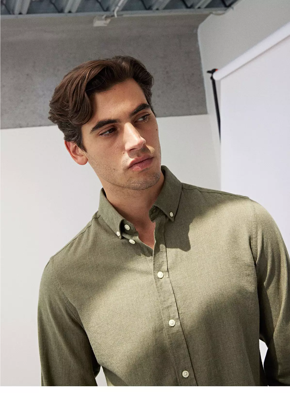 100% cotton long sleeve shirt. Traditional value fastenings on placket and cuffs. Button-down collar for a smart-casual look.