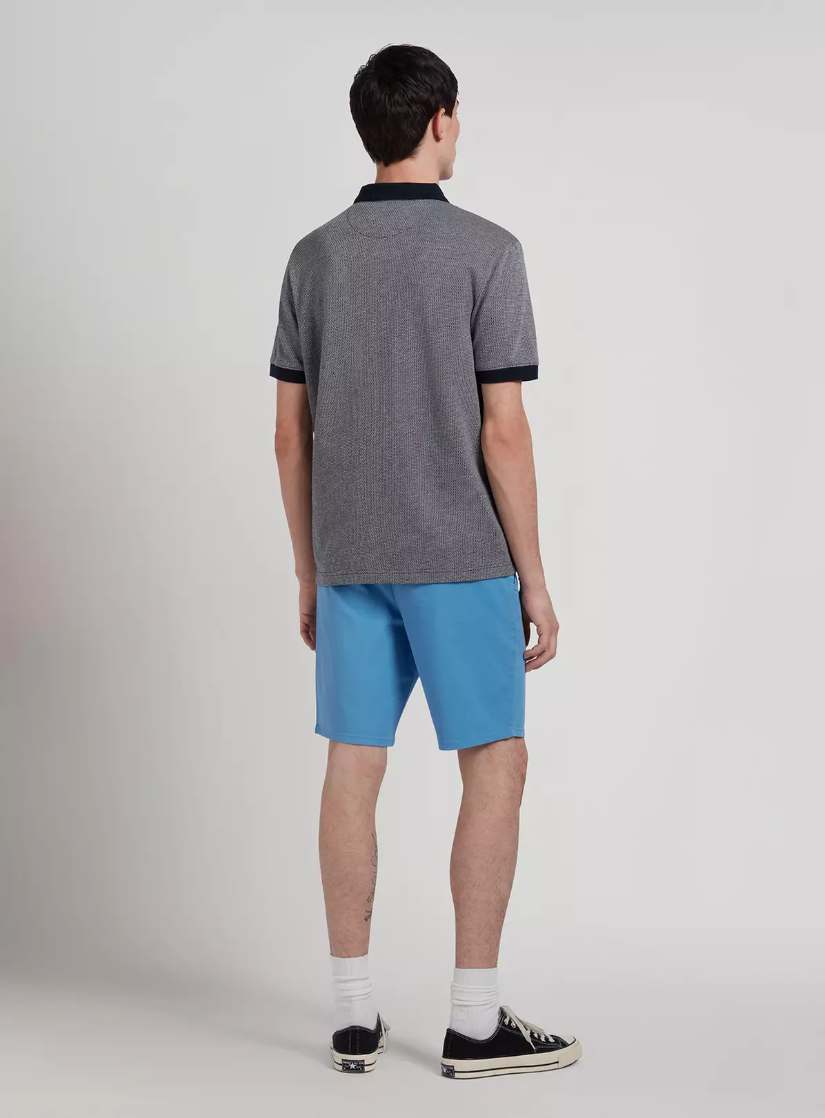 This 100% Organic Cotton 3 valueed polo shirt has a patterned body with plain colour and cuffs. The navy and white weave on this polo gives it a disctinctive surface texture and is a great additionl to any mans wardrobe.