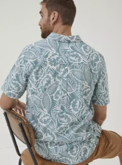 In a comfortable blend of cotton and linen, this shirt is breathable, stylish and cool. It’s in a comfortable fit with short sleeves and a single pocket on the chest. It’s perfect for sunny days and will see you the way through to Autumn. This special shirt has a tropical palm print, perfect for warm summer days.