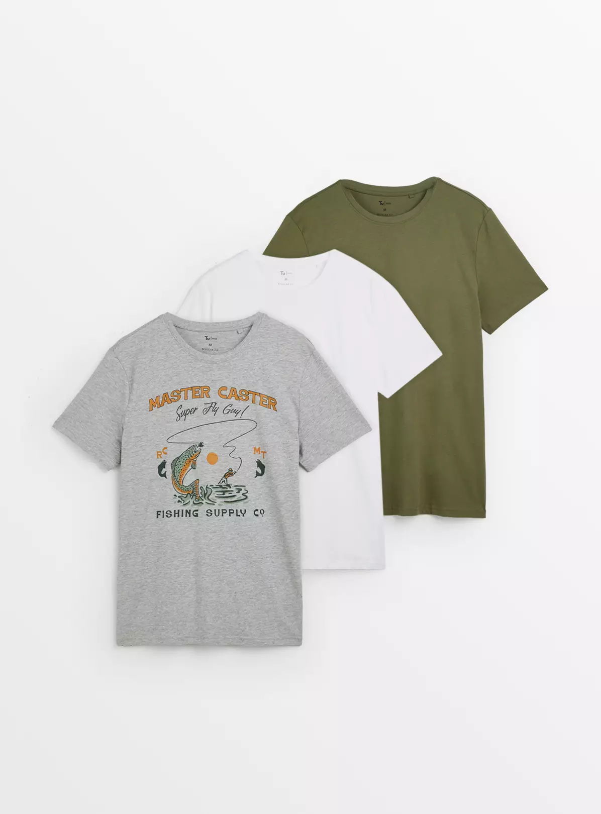 This three pack of crew neck t-shirts are designed to make your life easy this spring as you reach for the layers. Made from breathable, pure cotton, you’ll have a plain stone, plain green and Fishing graphic design option, getting you all stocked up for the changing season!