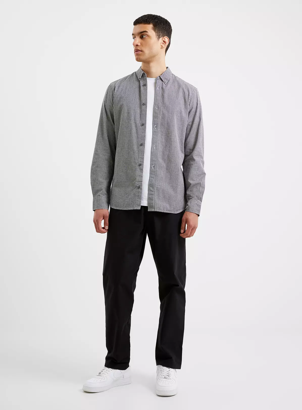 A timeless print takes over a traditional silhouette with our Gingham Long Sleeve Shirt. This lively style offers a monochrome must-have appearance, with the beloved gingham print accentuating its long sleeved silhouette, featuring a smart value-down collar, value-through fastening and rounded hem.