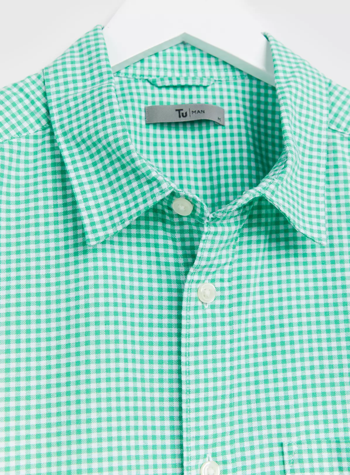 Add a pop of colour to your shirt collection this season with our green Oxford shirt. Crafted from a comfy cotton, it comes in a cool gingham design and has value fastening. Perfect for pairing with straight leg jeans.