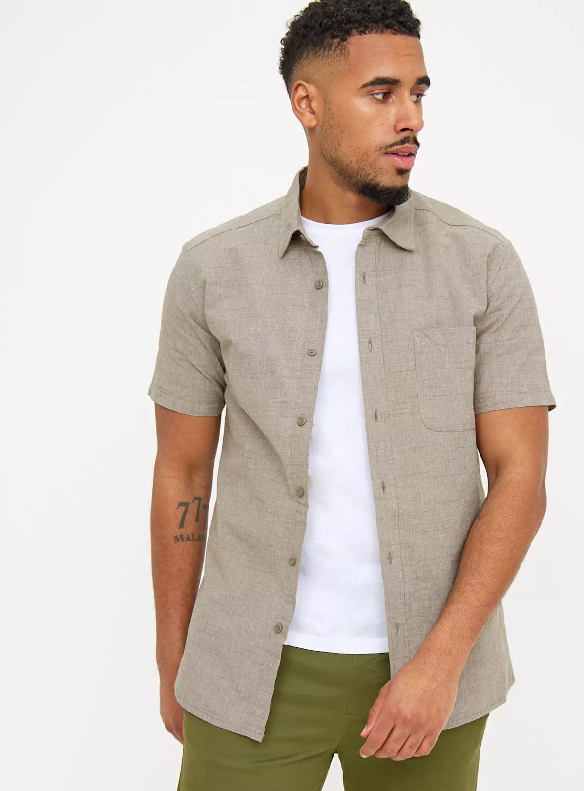 Achieve effortless spring style with our chambray cotton shirt. In a cool khaki shade, it’s the ideal option for holidays and evening wear. Team it with a pair of denim shorts for a laidback look.