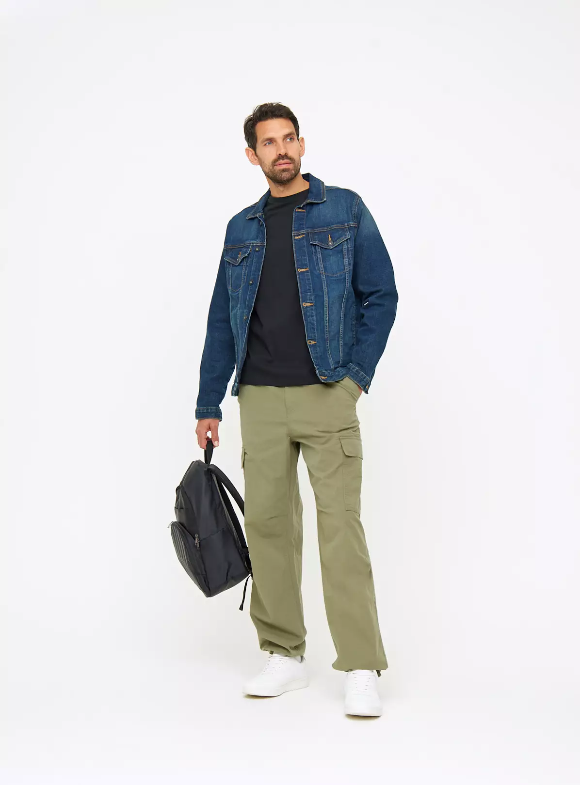 A practical and stylish option for weekend wear, our loose fit cargo trousers come in a cool khaki shade. In a straight leg, they have an elasticated waist with adjustable drawstrings. Style with a graphic tee and white trainers.