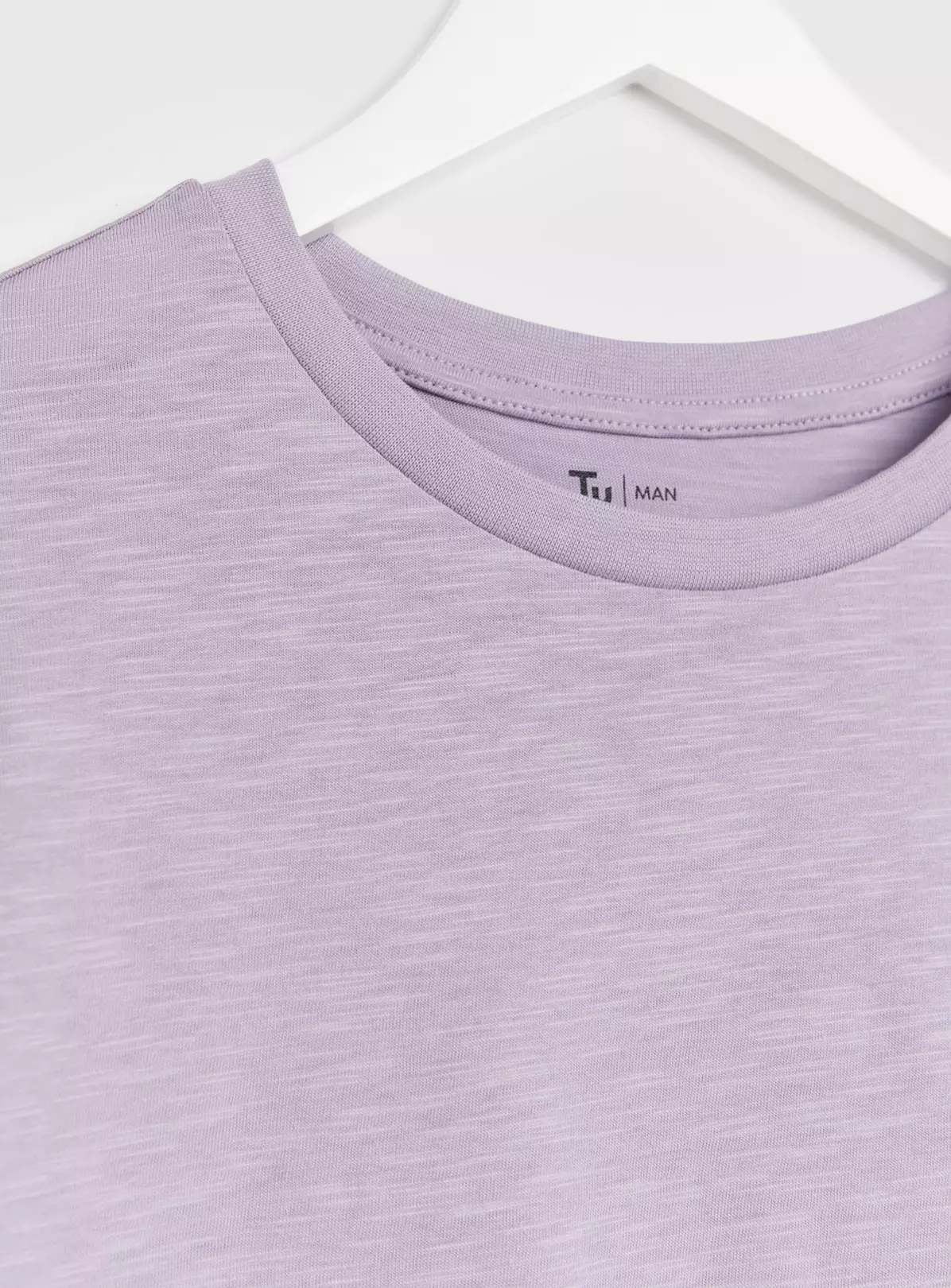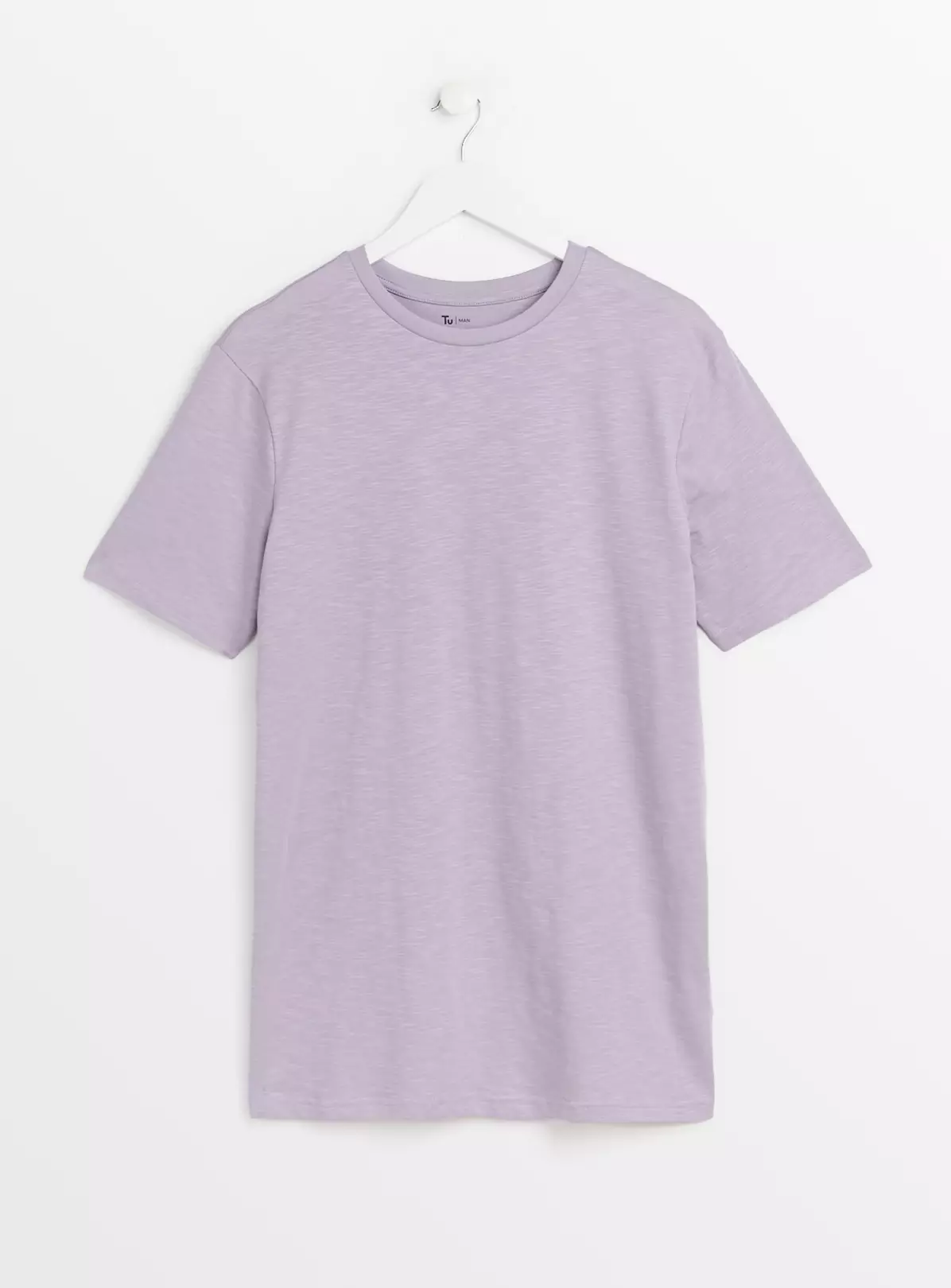 Update your casualwear wardrobe with our classic lilac t-shirt. With its crew neck and short sleeves, it’s a staple for your collection. Perfect for everyday wear, style it with midwash denim jeans. In a tall fit.