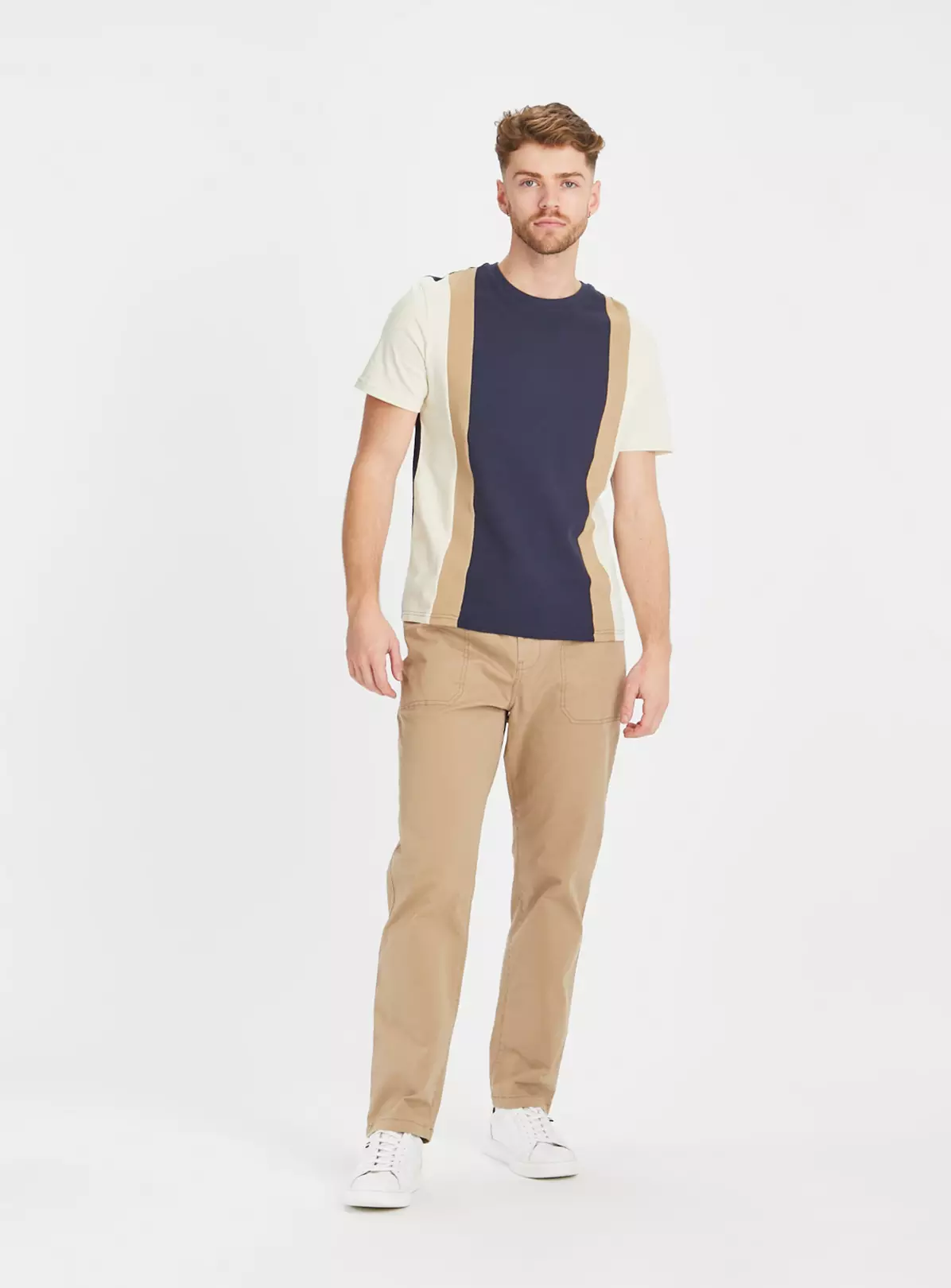 Navy & Stone Colour Block T-Shirt S